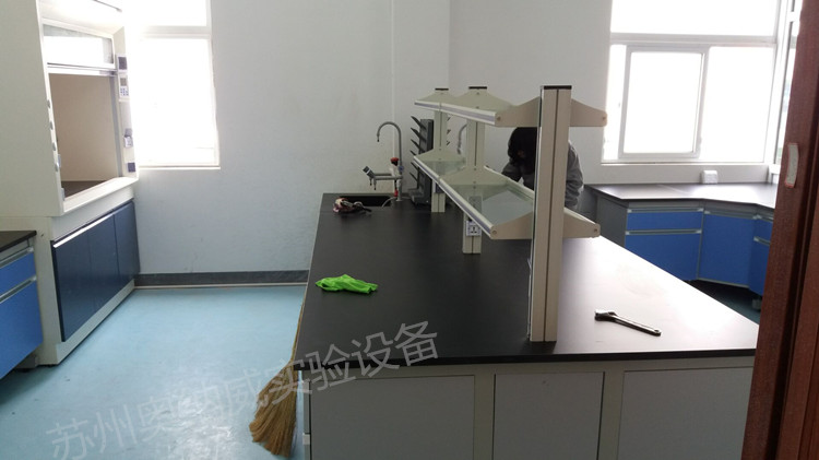常熟三某化工企業2017年與奧納威簽訂鋼木實驗臺和通風柜及其他實驗室設備現場安裝圖片如下: 鋼木中央臺空間安排合適,節約空間使房間整體看起來更有整體感 拐角鋼木實驗臺切邊非常合理,一點也可以違和感 另外一個房間的邊臺和全鋼實驗臺 如果需要實驗臺 通風柜 通排風系統可以聯系奧納威:13862123624 0512-66566548