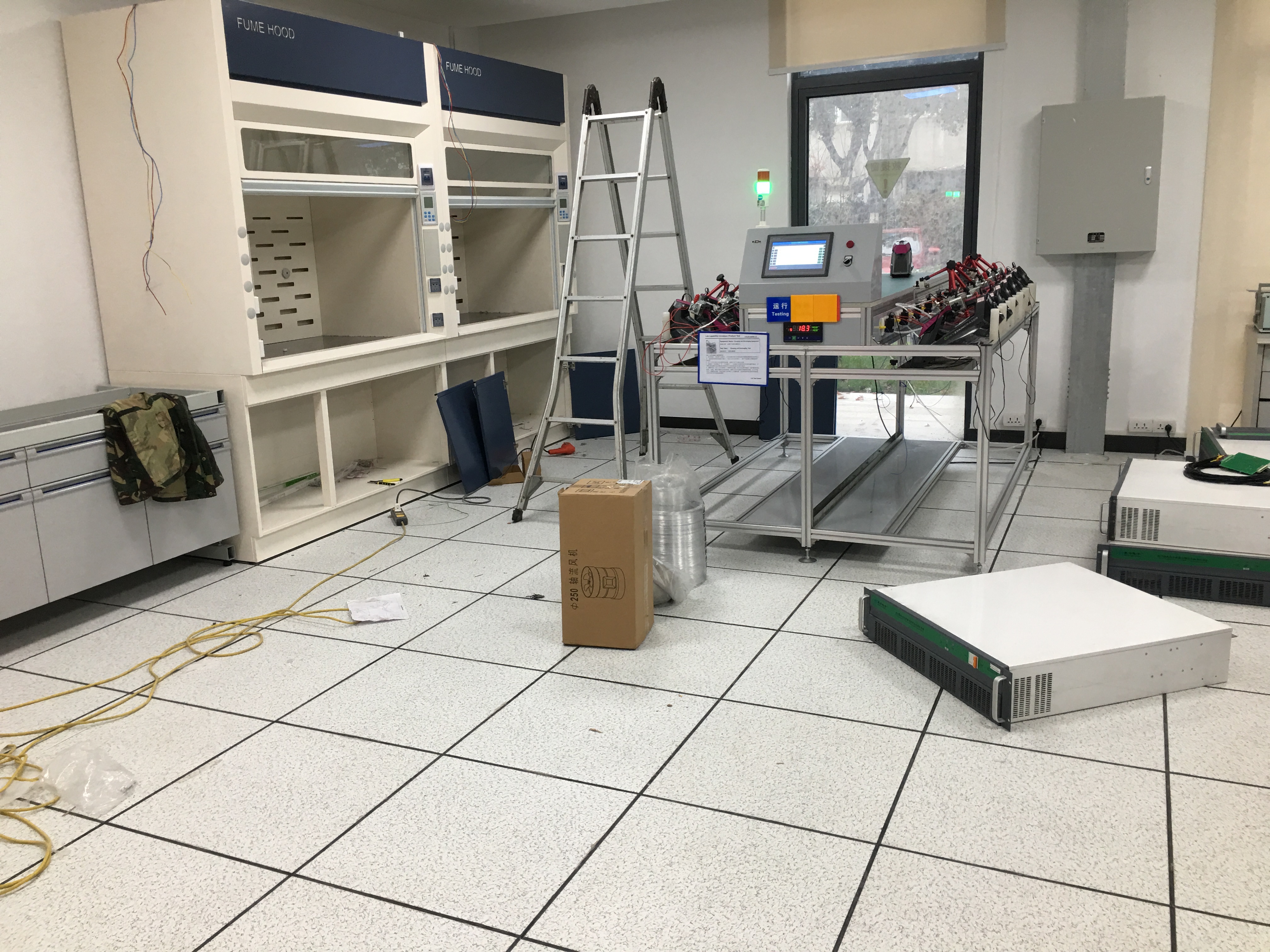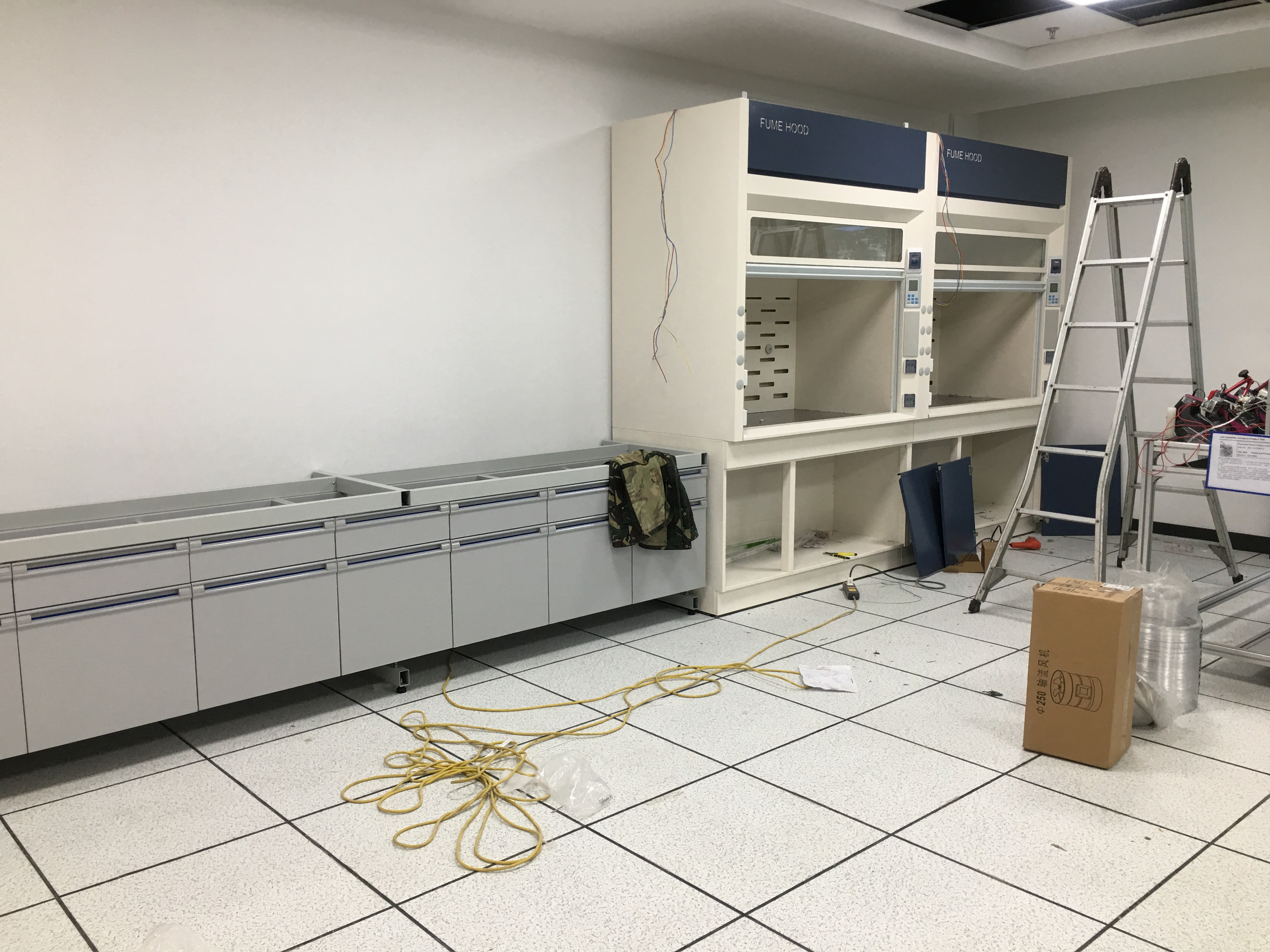 蘇州某某清潔設(shè)備有限公司與2018年和奧納威簽單鋼木實驗臺 全鋼通風(fēng)柜安裝現(xiàn)場【拍攝】如圖所示: