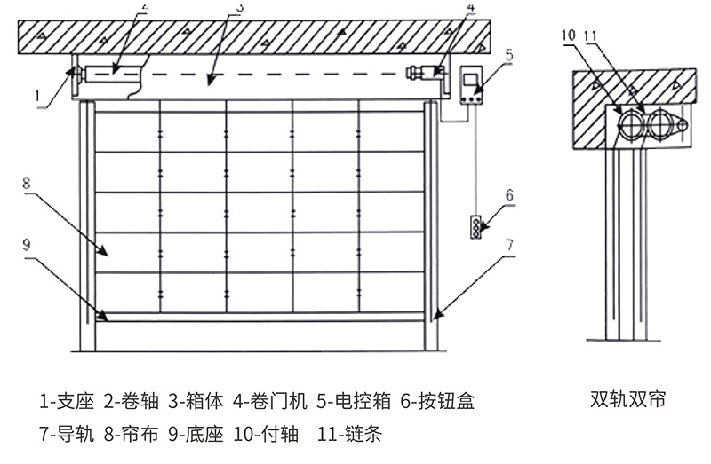 簾面采用陶瓷纖維防火毯、玻璃纖維氈、防輻射布和裝飾布經(jīng)高溫線縫制而成,雙面用鍍鋅鋼制條夾制,確保簾布的抗風(fēng)強度,底箱封板為鋼質(zhì)鍍鋅,厚度0.8mm ,無接縫。